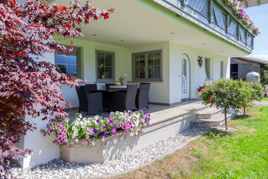 Ein Ausflug zum Natterer See oder ein Eis in der Altstadt von Innsbruck (Tipp: Gelateria Tomaselli!) sorgt für sommerliche Erfrischung. Und wer lieber daheim bleibt: Unsere Terrasse im Garten lädt zum Füßehochlegen ein – mit Blick auf die Berge.